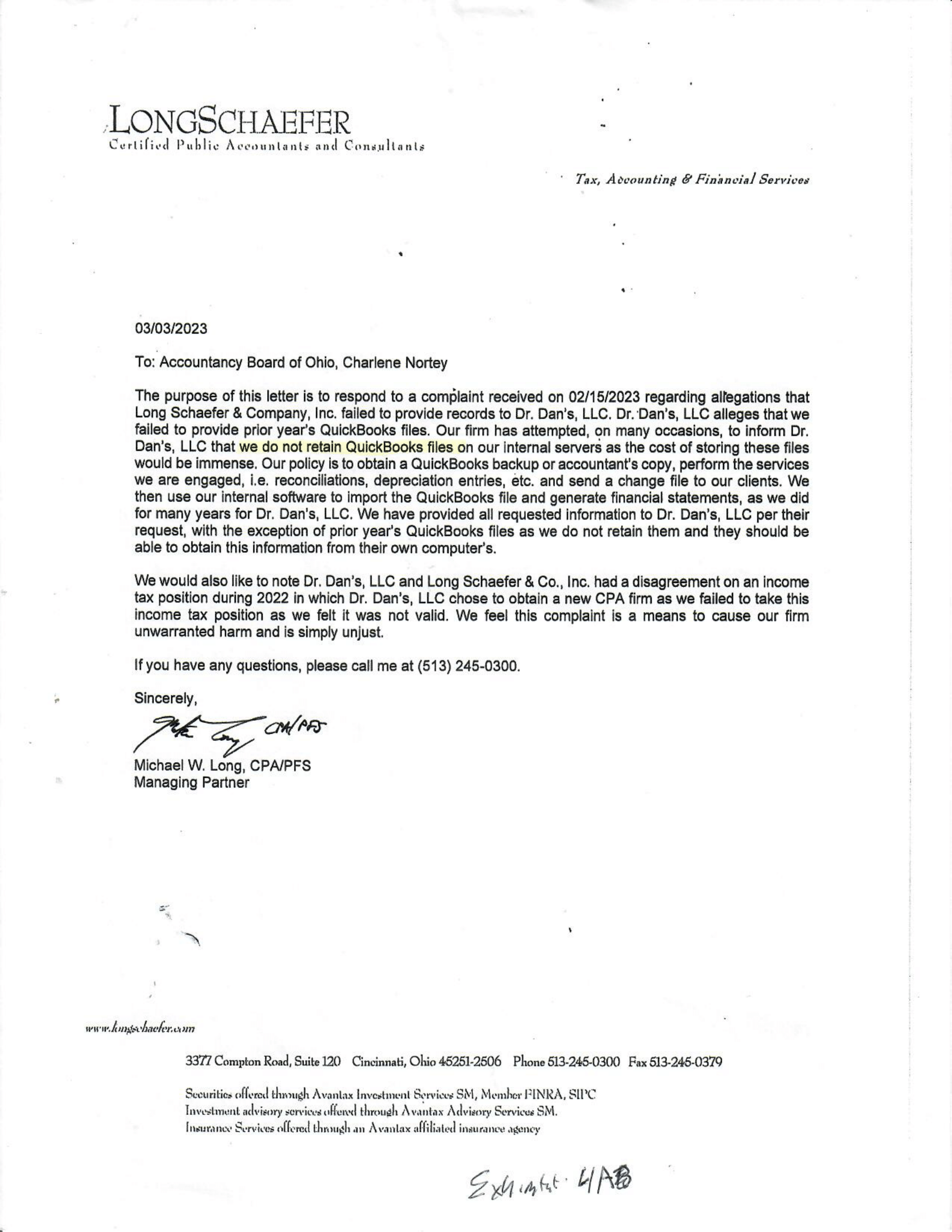 Long story short, Mr. Robertson was not able to resolve the issue and we were forced to hire expensive Attorneys to fix the return, and furthermore file a separate complaint to the Accounting Board. They admitted they did not keep our Quickbooks data, even though we paid them to keep our Data. SEE Exhibits 4A, 5 and 5B.